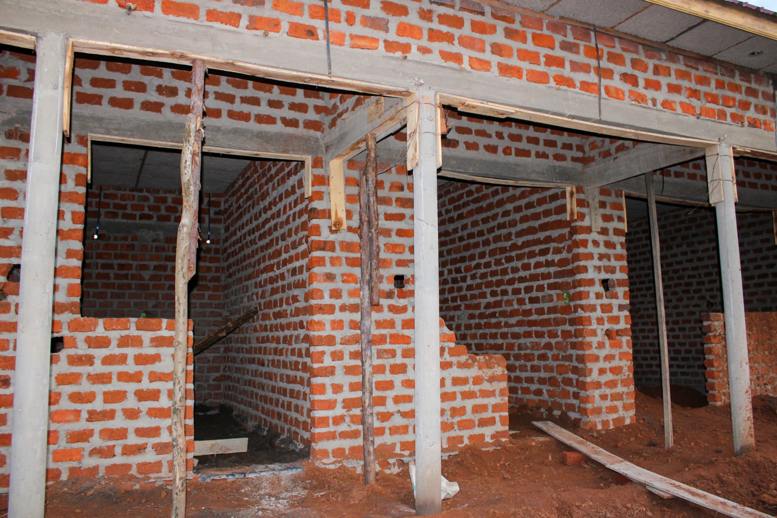 Die Bauarbeiten der neuen Schulküche sind schon gut voran gegangen. Die Mauern stehen. Jetzt fehlt nur noch das Dach.